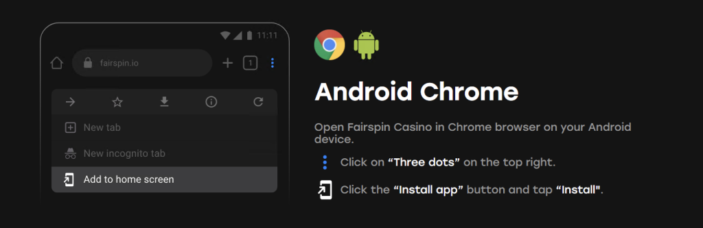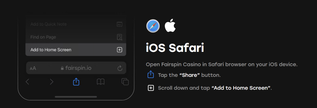 - Download the App: The PWA can be added to your home screen directly from the Fairspin website, making it easily accessible for both Android and iOS devices.
